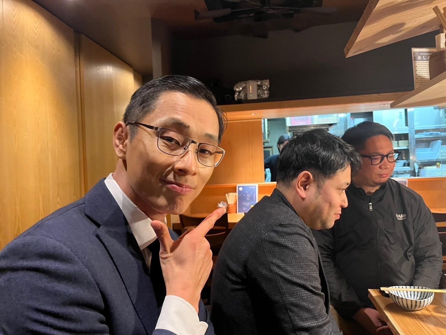 懇親会後は2次会・締めのラーメンに行き解散になったので、総務委員会と合流しましたがこちらも終わりの雰囲気だったのでラーメンに行くことになりました。ラーメン屋で食券を買って並んでいるとちょうど食事を終えられた浅井監事と出会いまして、総務委員会メンバー全員に3玉ずつの替え玉を頂きました。着席し食べていると店員さんが替え玉を持ってきて「あちらのお客様からです」というようなラーメン屋では聞かないセリフを聞きました(最終的に一人当たり5・6玉になりました)。委員会メンバーの辛…幸せそうなあの顔は忘れられそうにありません。(さすがに私も限界でした、ライス頼んだのはミスですね…翌朝に親子丼とうどんを食べたのは秘密です)。