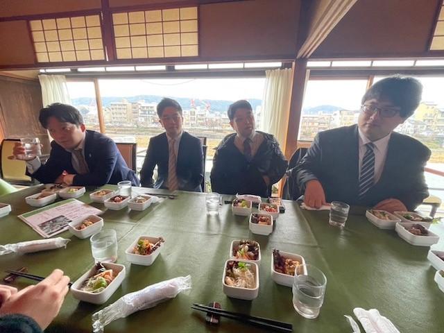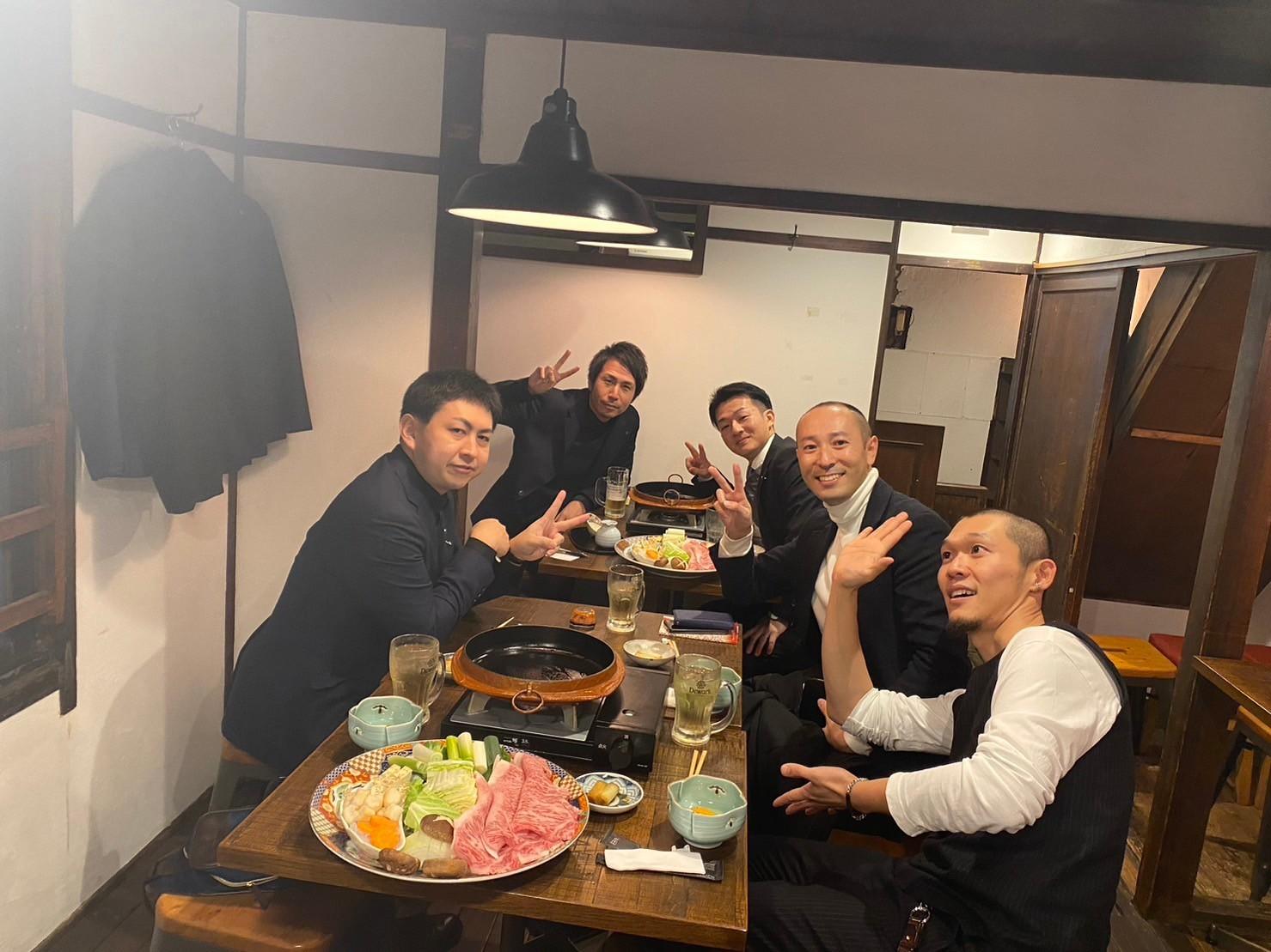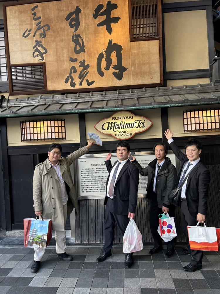 京都についてからは土地委員長・大浦広報幹事・水間会計幹事と合流し、すき焼き 肉のひろ重にて0次会を行いました。久しぶりに食べたすき焼きで舌鼓を打ちまくりました。