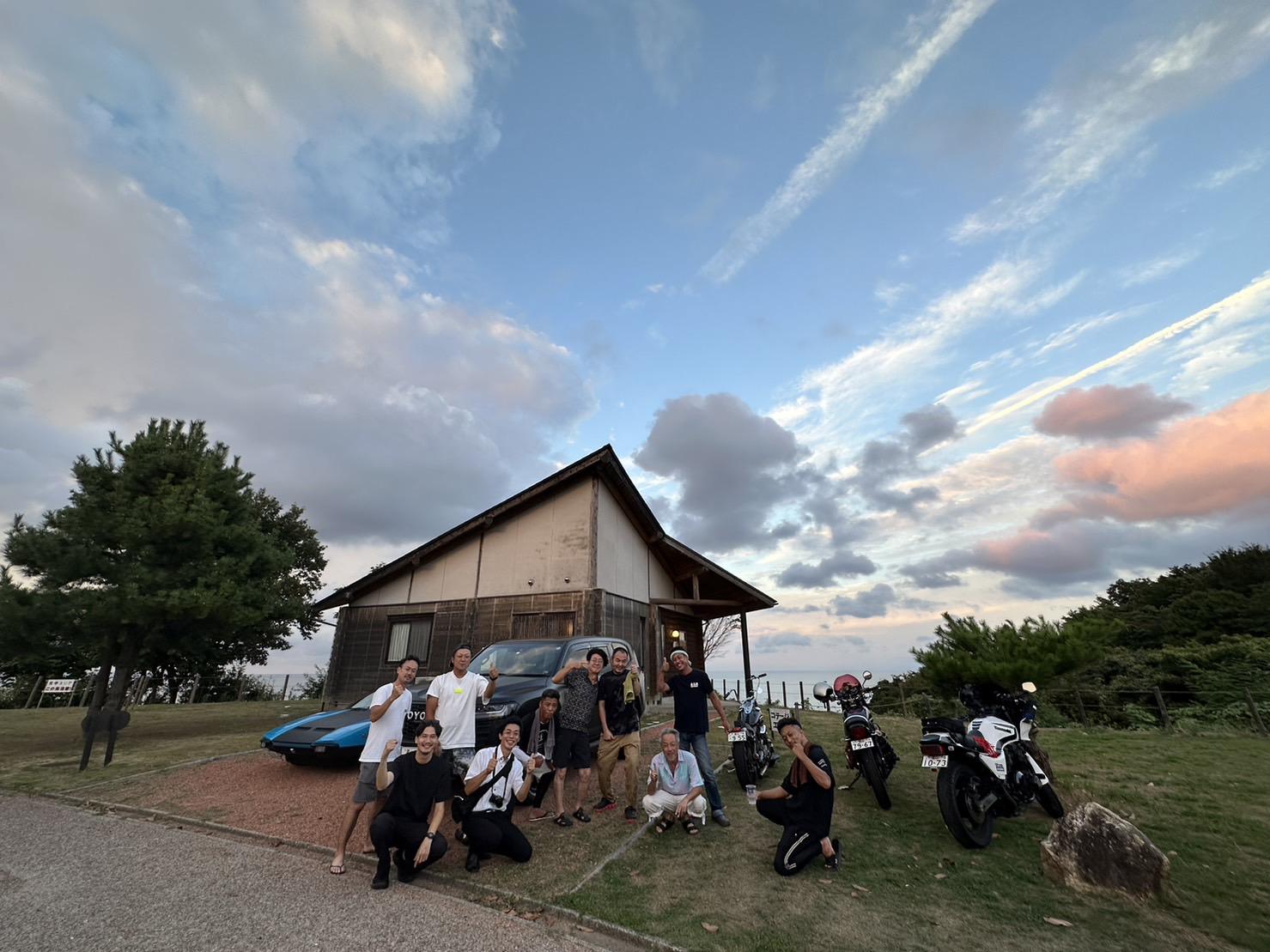 2023年09月一泊ツーリングでの貸し切りロッジの前で記念撮影