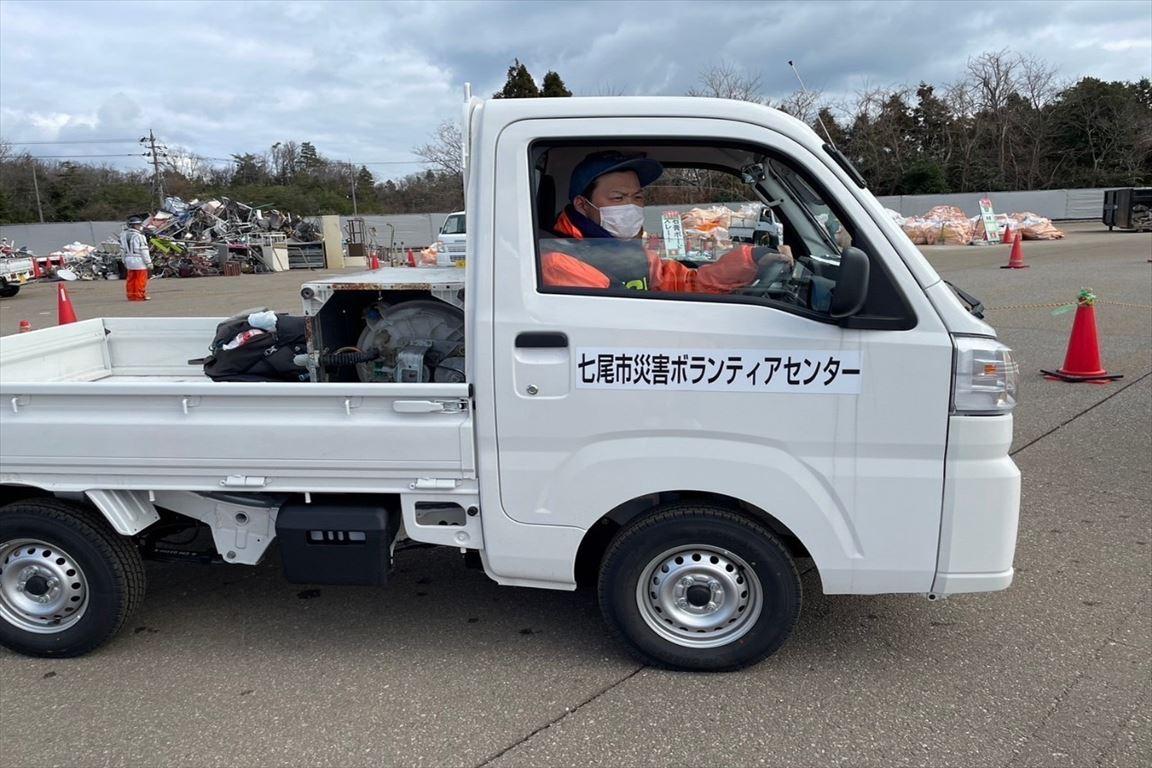 朝は8:30七尾へ集合でしたので6:10まだ日の出前の薄暗いなか、平木副理事長お出迎え。今回参加させていただいたのは、橋本淳先輩が東日本大震災へボランティアに向かった際に、スイッチが入られたということに関して、少しでも体現できるかと思い参加させていただきました。