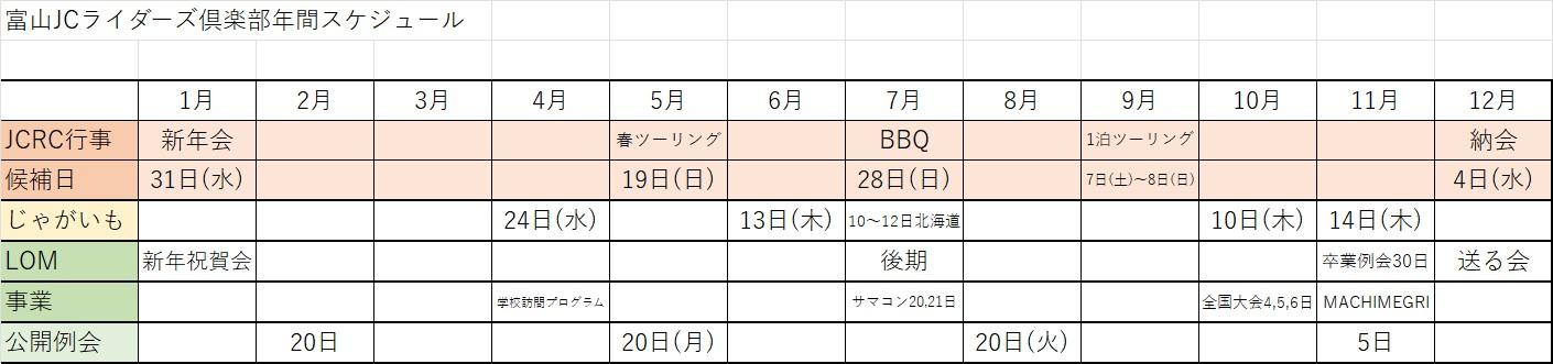 年間活動:1月新年会、5月日帰りツーリング、8月バーベキュー、9月一泊ツーリング、12月納会、