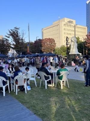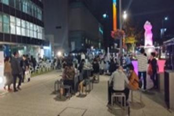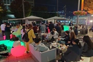 DJブースや飲食ブースを設置し、光と音の演出を行い、ブールバールの一角に非日常的な空間を創出します。