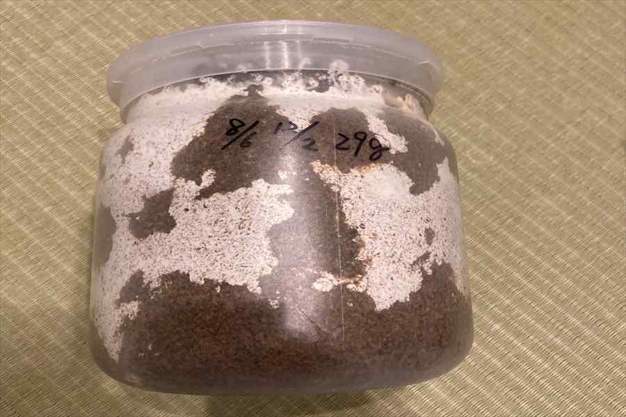 この初令幼虫から3令幼虫の間に幼虫の餌となるのが、この菌糸(キノコ菌が培養されたオガ粉)なのです。要するに幼虫の餌交換です。これを大体3ヵ月に一度交換します。今回行ったのは菌糸ビン10本、10匹分です。この日記ではみなさんに最後までクワガタの行く末を見守っていただければ幸いです。