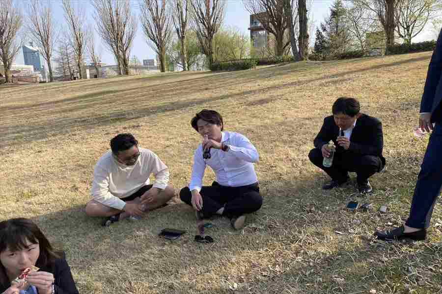 さて、青空が広がり、最高の花見日和となった先週末、富岩運河環水公園に続々と集まってきたのは、黒スーツにサングラスという出で立ちの新入会員たち。集合した目的は、会員交流事業に向けたムービー撮影です。え~~~はい、完全に撮影時期と場所を間違えました。桜の見納めを楽しむ大勢の花見客の中で、明らかに浮いている怪しい集団。冷たい視線、我々を避けている動線・・・は?そんなもん関係あるかい!!少しでもイベントを華やかにするため、恥ずかしいという感情を捨ててやりきりました。