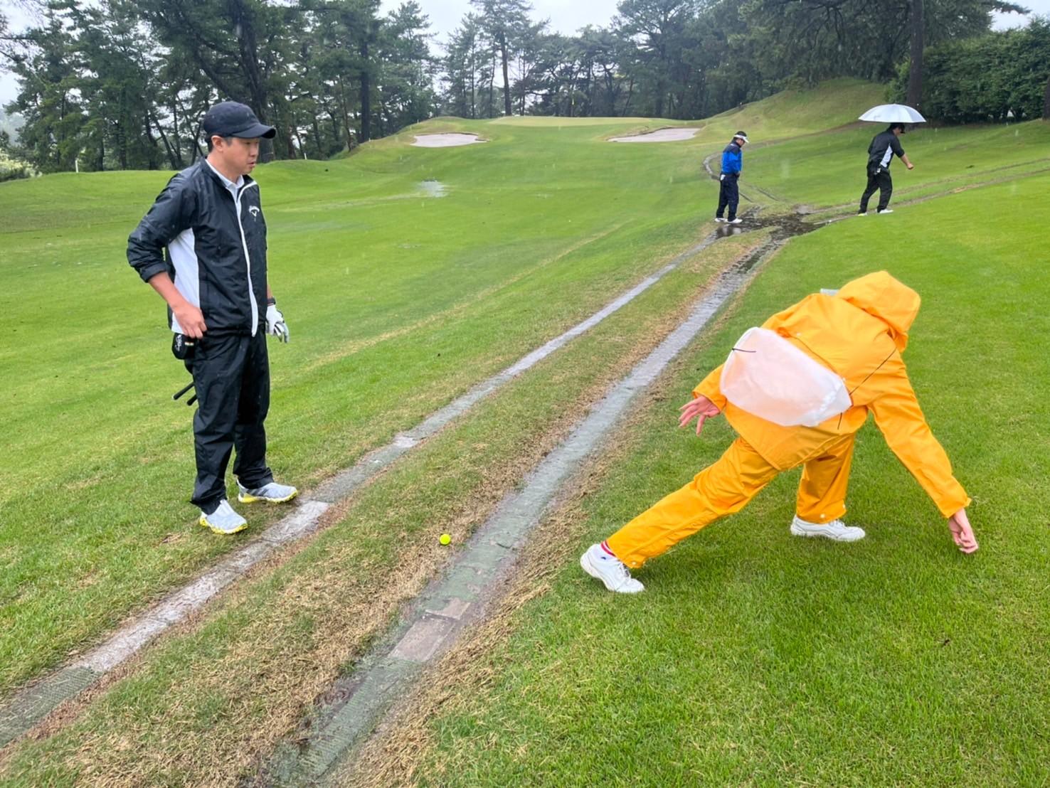 さていよいよ旅の大本命、「2024年度 日本JCじゃがいもクラブ 第47回 中日本地区大会in岡崎」。会場の葵カントリークラブは、愛知県でも有数の名門で、歴史を感じる素敵なゴルフ場でした。天気はあいにくの雨模様でしたが、極度の二日酔いでうろ覚えのルールを思い出し、裾をズボンにしっかりと入れて、いざルール説明。
