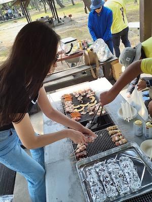 BBQは肉、魚、焼き鳥などたくさんの食材を買って、浜黒崎キャンプ場で委員会メンバーとわいわいしながら食べました。そして、ゲーム大会も開催しました。私はヘルニア持ちだったのですが、委員会メンバーからそんなことも関係なくやれ!やれ!と言われ、怖かったです(笑)