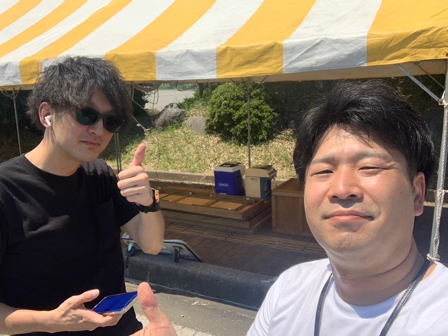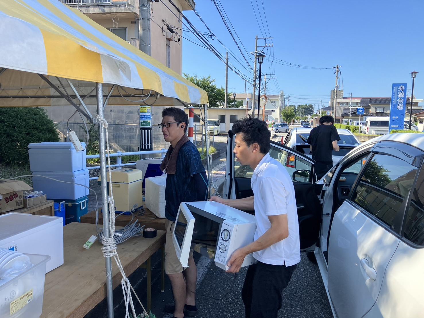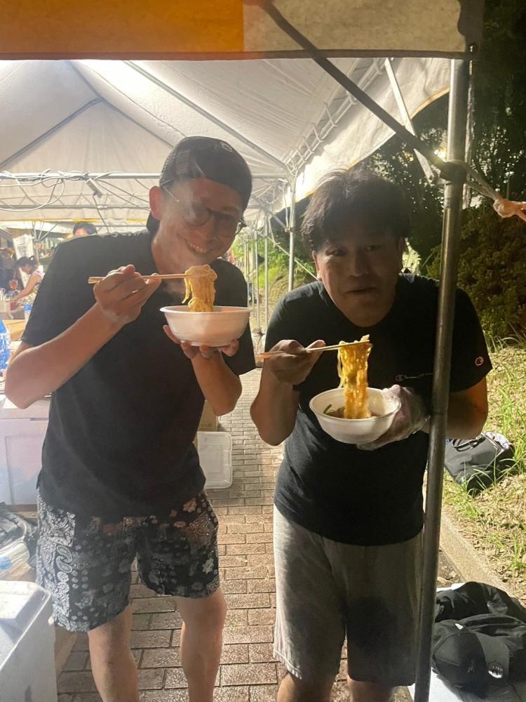 商工会から出店されていた、こぺさんこと高平先輩、フリーザこと坂林先輩、次世代育成委員会の亀山委員から塩分補給のためのラーメンの差し入れをいただきました。おかげで熱中症にならず、本当に助かりました。