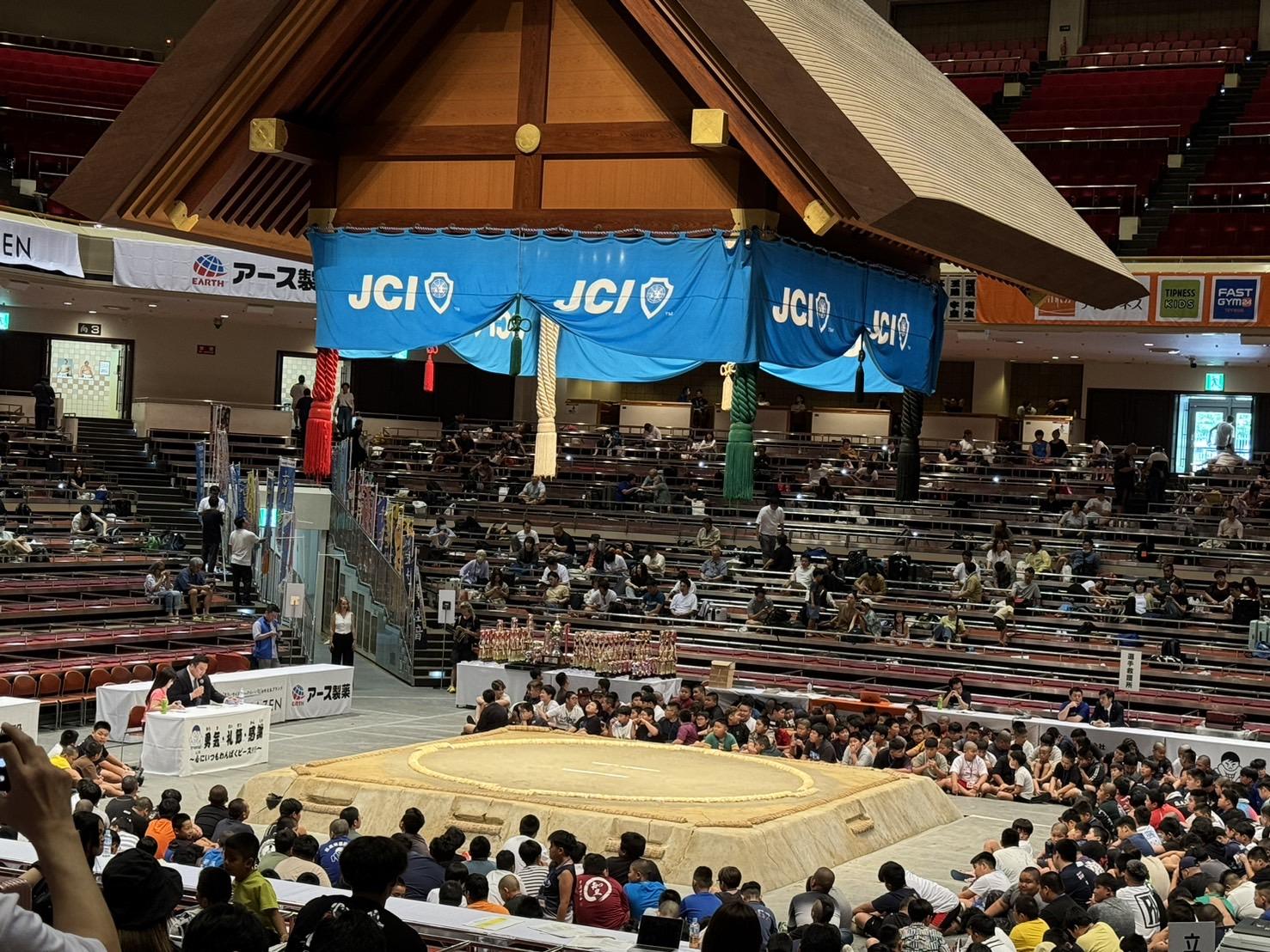 迎えた大会本番では、倉川副理事長もASPACのリベンジとばかりに無事に到着!そして合流することができ、富山JCの応援部隊も準備万端です。会場では、子どもたちの真剣な表情を至る所で見ることができ、正直、鬼気迫るものも感じ、声をかけるのも躊躇うほどの雰囲気でした。親御さんとの話を聞くと、子どもたちは大変に緊張しているとのことで、こんな大勢の中で取組をおこなうのだから当然だよなと思いながら、土俵へと向かうその背中は子どもながらに大変頼もしく、そして大きく見えました。