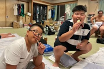 一泊という限られた時間でしたが、ご飯、お風呂、身支度、と寝食すべてをともにすることで、一緒に過ごしたわんぱく力士たち、部屋の力士さんたちとなぜか心の距離がぐっと縮まりました。また、翌日の大舞台を控えたわんぱく力士たちもくつろぎながらコンディションを整えられました。親方、お兄さん力士たちのやさしさと心遣いのおかげだなと感じました。富山代表の子どもたちも感動と感謝を胸に、翌日の試合では勇ましい取り組みを見せてくれました。