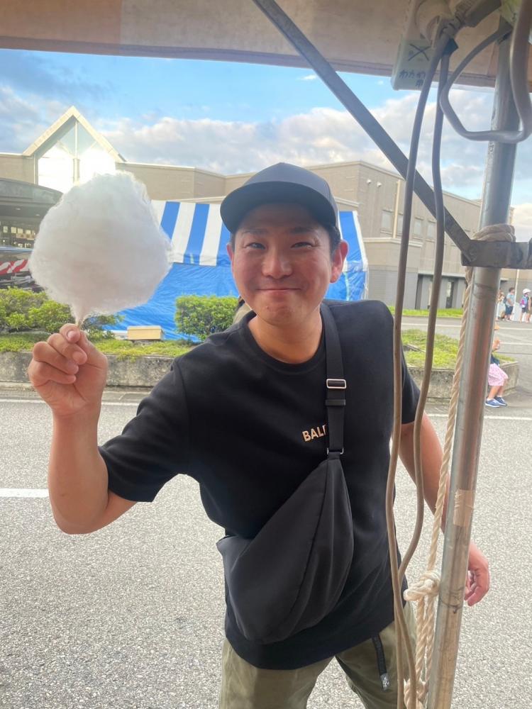 当日は地元堀岡(射水市)の納涼祭や氷見の番屋街では花火大会等、富山県内各所でお祭りが開催されていた中、私は19:00からの参加となりました。現地に着くなり何やら長蛇の列。JCブースでは、ポップコーン、カラフル綿あめ、かき氷とどれも大人気でした!総務委員会の倉田運営幹事はポップコーンには飽き足らず、綿あめづくり本当に初めて??と言わんばかりの上手さでした。まさに綿あめの魔術師降臨!!