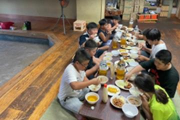 3名のわんぱく力士と同じくらいワクワクしながら高砂部屋の門をくぐると、まず力士さんに案内されたのは20畳ほどの大部屋。中学の宿泊学習以来の布団の場所取りは、大人も子どもも関係なく早い者勝ちでした。相撲部屋体験で一番感動したのがちゃんこです。用意は当番制とのことですが、調理はぱっぱと手際よく、大鍋なのに味つけやだしが非常に丁寧で、「美味しい」と連呼しながら子どもも大人もおかわりしていただきました。