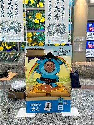実はわんぱく相撲全国大会、大変想いが深いLOMが多いからか、8月に開催された男子大会では参加している他LOMの理事長はもちろん、正副の方々も応援に駆け付ける様子を見ておりましたので、大井山理事長とお話する機会をいただいた折に何度もめげずに「女子大会へ是非お越しください!」とお誘いしておりました。それが功を奏したのか、理事長だけでなく、ご家族まで来てくださることになり、これはしっかりお出迎えをせねばと喜多埜副委員長と一足お先に松山へ行き、お出迎えの準備をすることに。