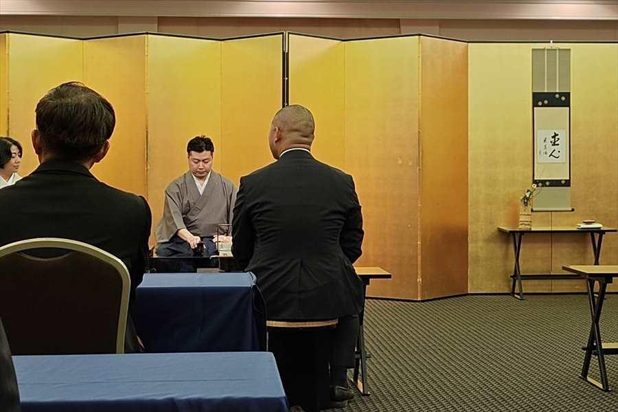 記念講演では裏千家お家元の千宗室先輩のメッセージが映像で流れた後、千宗室先輩の甥にあたる2024年度京都青年会議所理事長の伊住公一朗君の講演がありました。茶道は総合芸術、青年経済人として引き出しを増やす、真の国際人など真面目な内容でしたが、伝統を引き継ぎ親族として裏千家を支えておられる方のお話は説得力がありました。