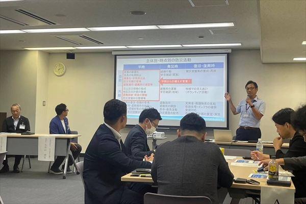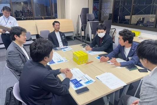 打合せをする防災トリオと富山市の児島主幹