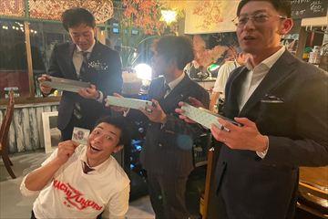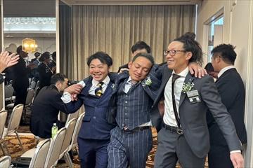 2部では、乾杯の後にはお世話になった卒業生の皆さまにご挨拶をする現役会員も多く、富山青年会議所らしいお酒の飲みっぷりを発揮される方や、しっとりと語り合う方々など各テーブルには笑顔が咲いていたように思えます。アトラクションでは会員が一丸となって会場を盛り上げ、楽しい時間を過ごすことができました。それぞれに送られた花やお酒などを囲み楽しい時間は一瞬で過ぎていきました。