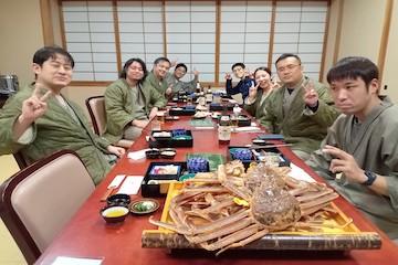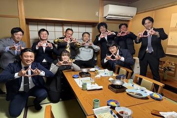 そこから今回の宿泊先である美山森林温泉のルポの森に行き、そこで、9人全員が集合しました。宴会では私の考えた「豪華賞品を目指せ!次世代育成委員会5番勝負」を行い、エキシビションマッチでは、卒業生である河合幹事に前期アカデミー交流事業のリベンジして欲しかったので利き酒対決に再挑戦してもらいましたが、見事に間違えてました。イントロクイズでは坂本委員長の無類の強さにびっくりしました。他の委員会メンバーは、ご長寿番組や大喜利のような爆笑珍解答の連続で盛り上がりが最高潮でしたが、1番の目的である越前カニを食べているときは静かになっていました。河合幹事の60点のダンスを見ることもでき、楽しいなと思うと同時に暫くは見れなくなるので寂しくもありました。その後は部屋でお酒を飲んだり、unoをしたり楽しく長い夜を過ごしました。